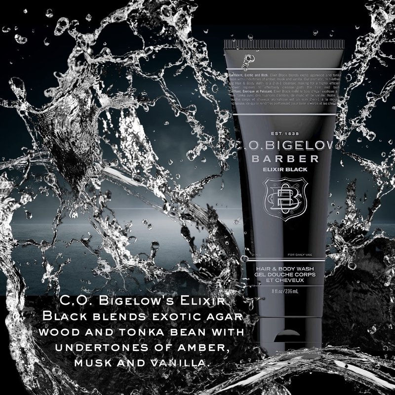 C.O. Bigelow Men's Hair and Body Wash, Elixir Black, No. 1605, 8 fl oz, Mens Body Wash & Shampoo, Musk & Vanilla Moisturizing Mens Shampoo & Body Cleanser, Pack of 2