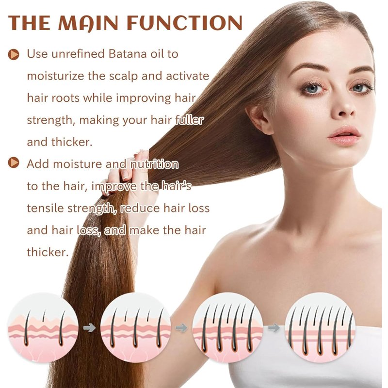- Hair Strength and Growth: Batana oil helps strengthen hair follicles, reduce breakage, and promote healthy hair growth.