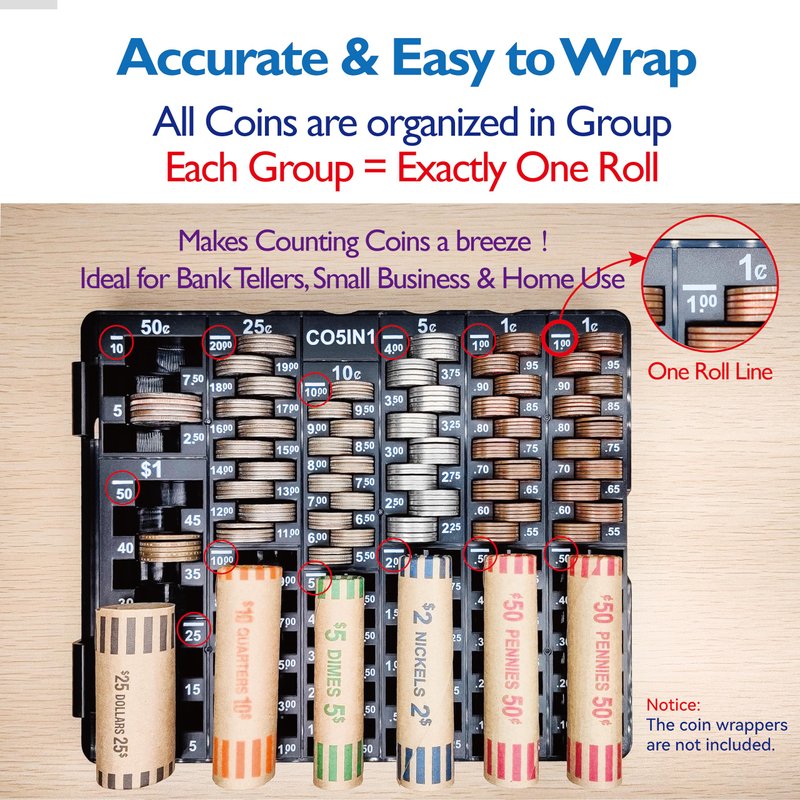 - 2. Accurate & Easy to Wrap: Our Change Sorting Tray are designed in Group. One Group is exactly one roll. Accurate & Easy to use. No more counting to wrap. Great gift for kids too. Very useful to use as the coin dispenser, Coin Counters & Coin Sorters or Coin Counter Machine.