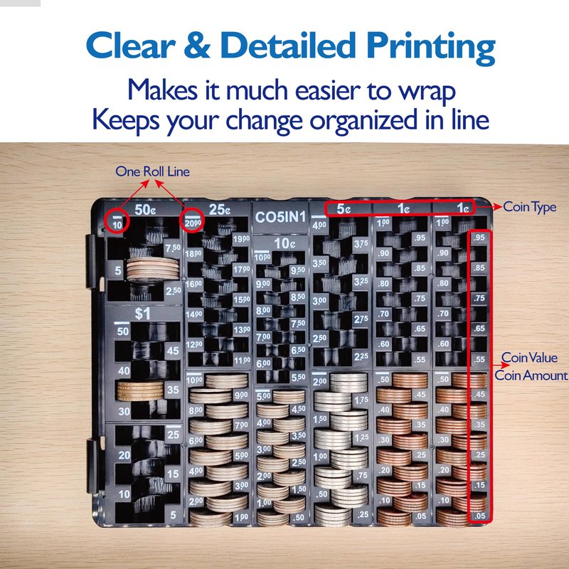 - 5. Clear & Detailed Printing: With clear & detailed printing, you can easily use this coin organizer. And get your loose change from the Coin Bank or Coin Jar to sort them easily.