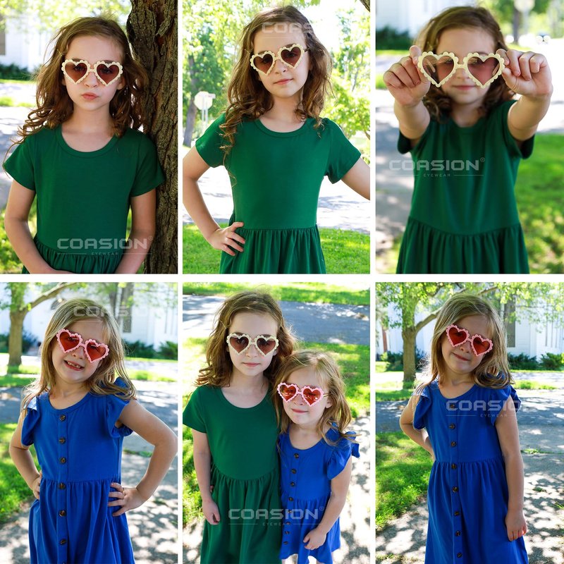 - Fashion & Adorable: Cute and fashionable heart shaped sunglasses with elaborate wave border embellishments look even more compact and cute with a variety of colors to choose from. We believe your child will be cool, fashion, cute when they wear this sunglasses.