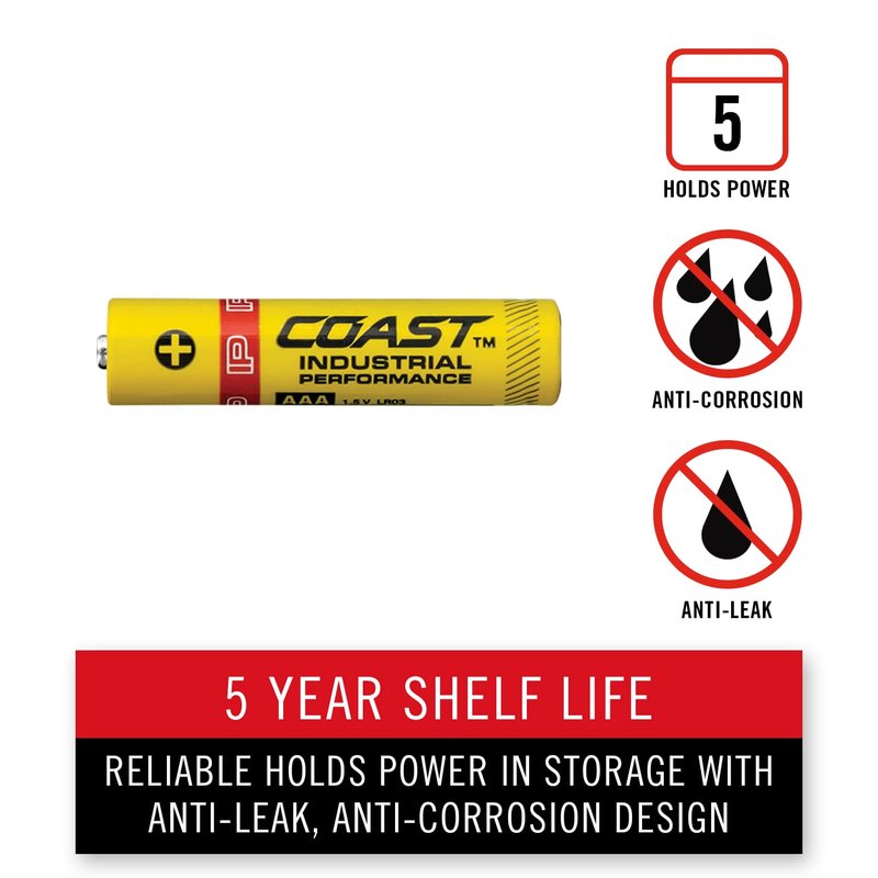Coast 4 Pack AAA Industrial Performance Alkaline Batteries, High-Performance