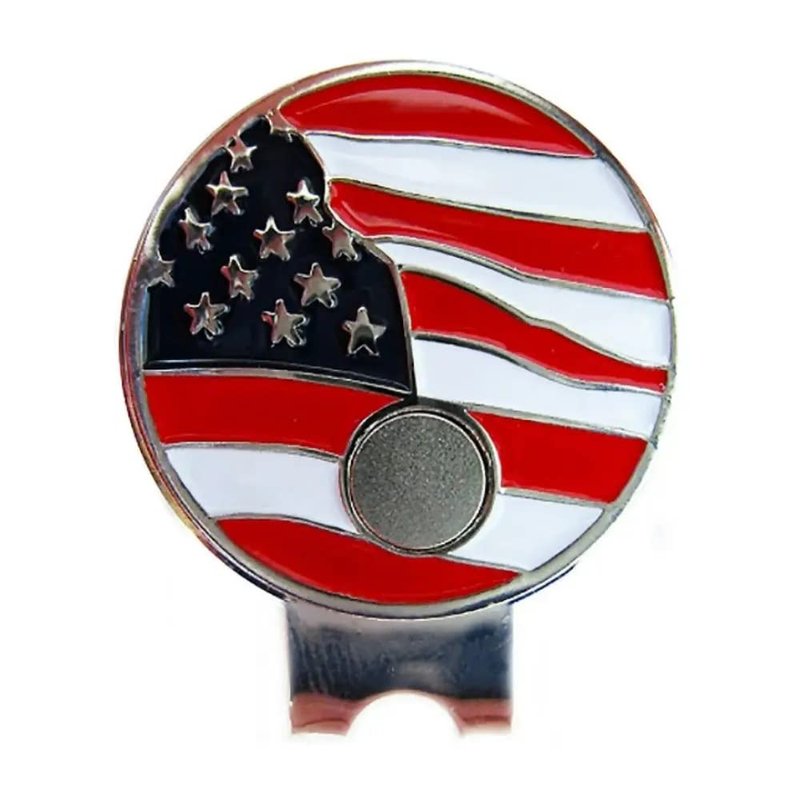 This awesome golf ball marker is quality constructed of iron, have raised metal, and is hand painted. The matching USA hat clip has a strong magnet that keeps that ball marker in place until you are ready to remove it.