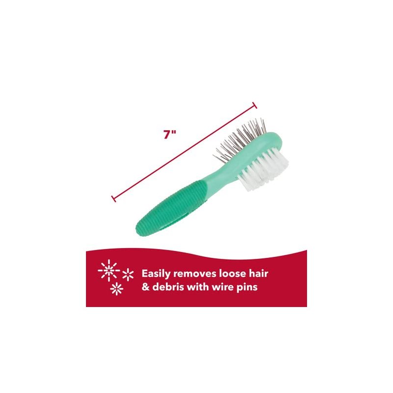 Get two small-dog grooming tools in one with the Li'l Pals Dog Combo Brush! This innovative double-sided design features both wire pins and bristles so you can do all your dog's grooming with one tool. The wire pins lift out loose hair and debris, while the bristles help distribute your dog's natural oils for a healthy, shiny coat. Start by removing mats and tangles, then brush from head to tail to distribute natural oils. Unlike larger brushes that may scare smaller dogs or be difficult to maneuver around their small bodies, the Li'l Pals Dog Combo Brush makes grooming easy. Your dog will love the gentle feel of the brush. Use this brush for all of your grooming needs!