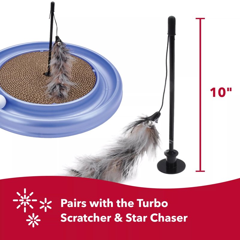 Coastal Pet Turbo Teaser Cat Toy - Interactive Cat Feather Toy and Cat Wand - Attach to Cat Towers & Scratcher Pads - Assorted - 10"