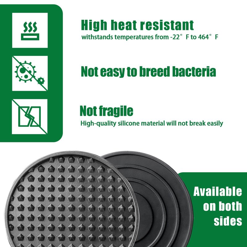 - DOUBLE-SIDED DESIGN: This coffee table coaster features a reversible design, non-slip bottem & non-stick top, available on both sides. Concave-convex pattern design helps promote air flow to prevent coaster from sticking to table or mug. The drink coasters are made of grade silicone, which enhances the friction ensures great table grip.
