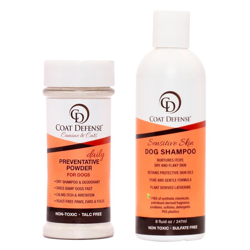 COAT DEFENSE Paw Licker Bundle | Dry Powder for Dogs & Sensitive Skin Dog Shampoo for Allergies and Itching | Smell & Itch Relief for Dogs | Itchy Skin Relief & Yeast Infection Treatment for Dogs