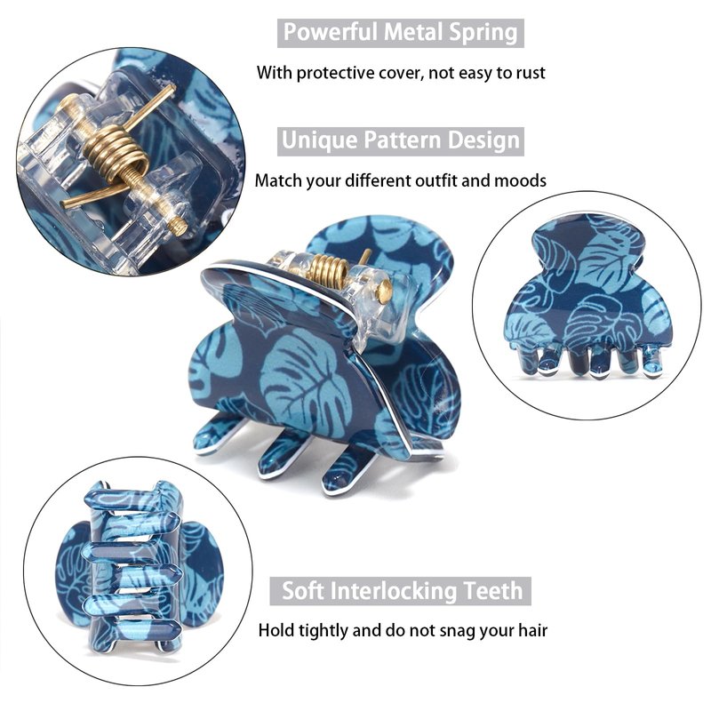 - Unique Design: Designed to be more than just practical, our small claw clips come in various colorful patterns. Pair them with elegant ensembles, sweet tank tops, sheath sportswear, Classic floral dresses, casual plaid shirts, fashionable windbreaker, and monochrome T-shirts. Never worry about finding the right hair accessory to match your wardrobe again - these hair clips are the perfect choice.