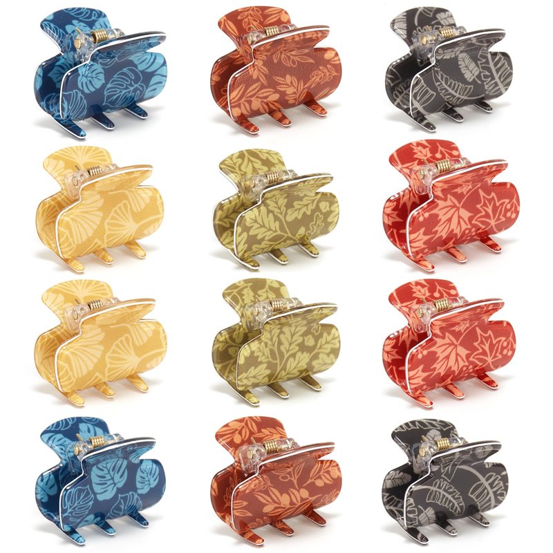 Cobahom 12Pcs 1.3 Inch Small Hair Clips for Hair Styling Mini No-Slip Jaw Clips for Thin Thick Hair Printed Hair Clamps for Women Girls, Leaf Pattern