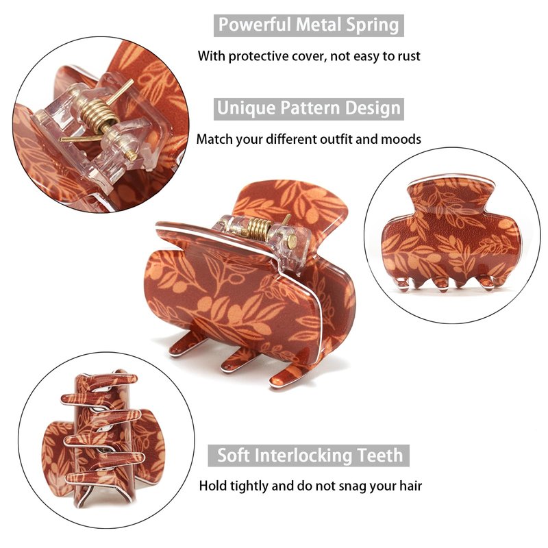 - Unique Design: Designed to be more than just practical, our small claw clips come in various colorful patterns. Pair them with elegant ensembles, sweet tank tops, sheath sportswear, Classic floral dresses, casual plaid shirts, fashionable windbreaker, and monochrome T-shirts. Never worry about finding the right hair accessory to match your wardrobe again - these hair clips are the perfect choice.