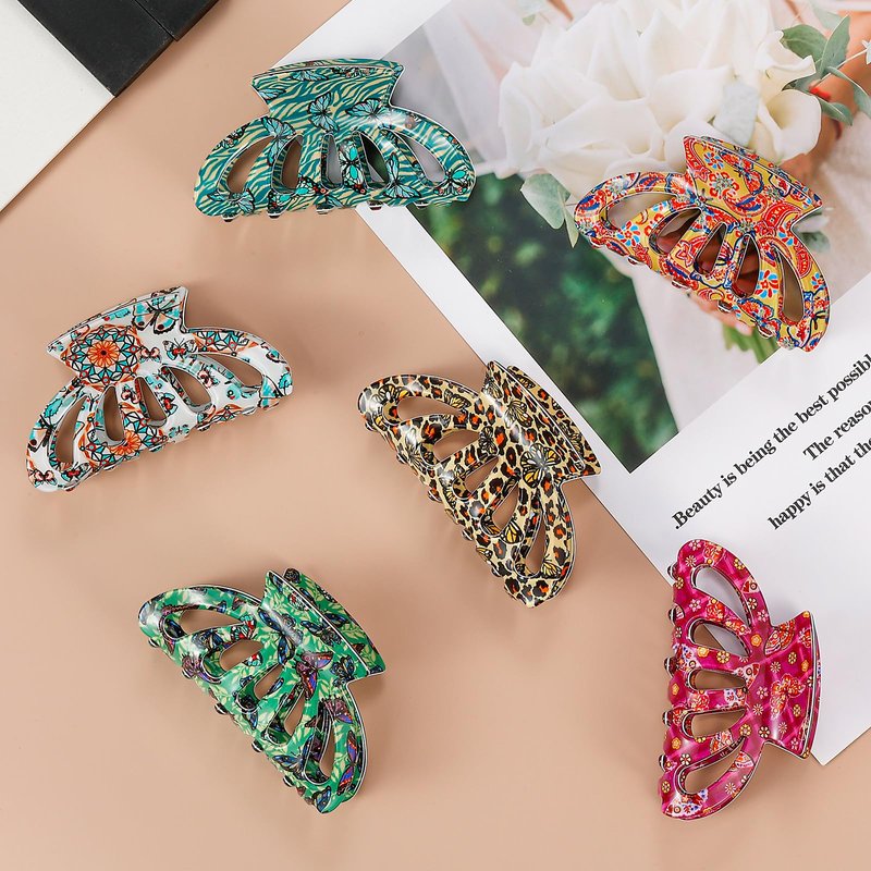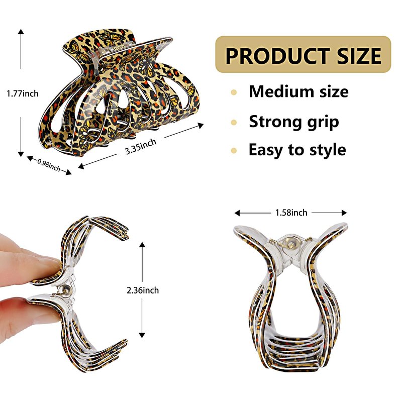 Cobahom 6 Pcs Hollow Medium Claw Clips for Hair Styling, 3.35 Inch Printed Hair Clips for Thin Hair, No-Slip Grip Hair Jaw Clamps for Women Girls, Butterfly Theme