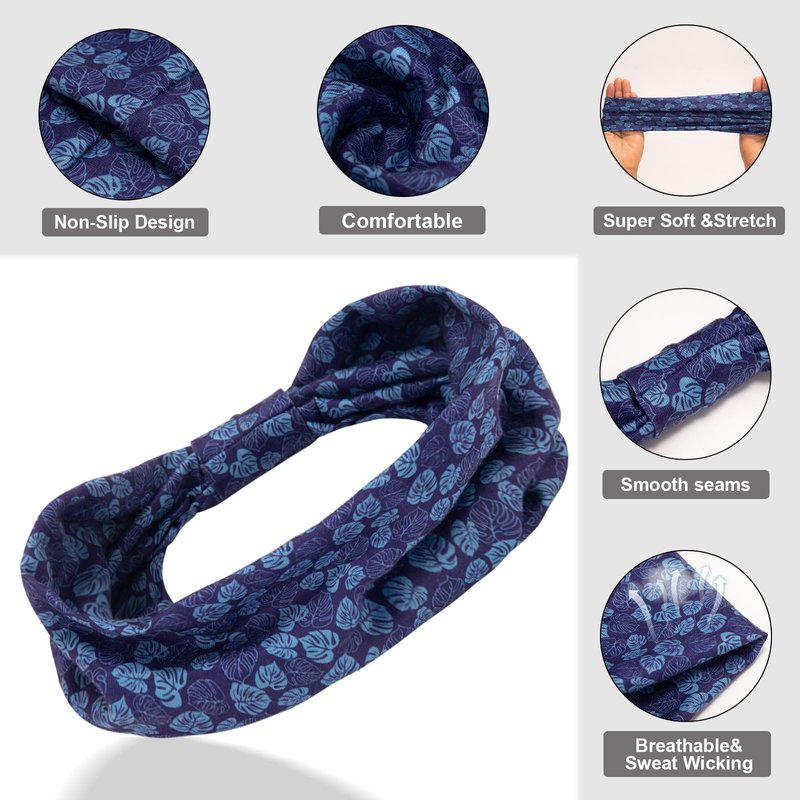 Cobahom 6Pcs Wide Headbands for Women Non Slip Soft Fabric Hair Wrap Turban Plain Head Bands Elastic Sport Hair Bands for Workout Yoga Running (Leaf Pattern)