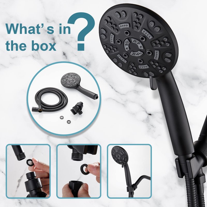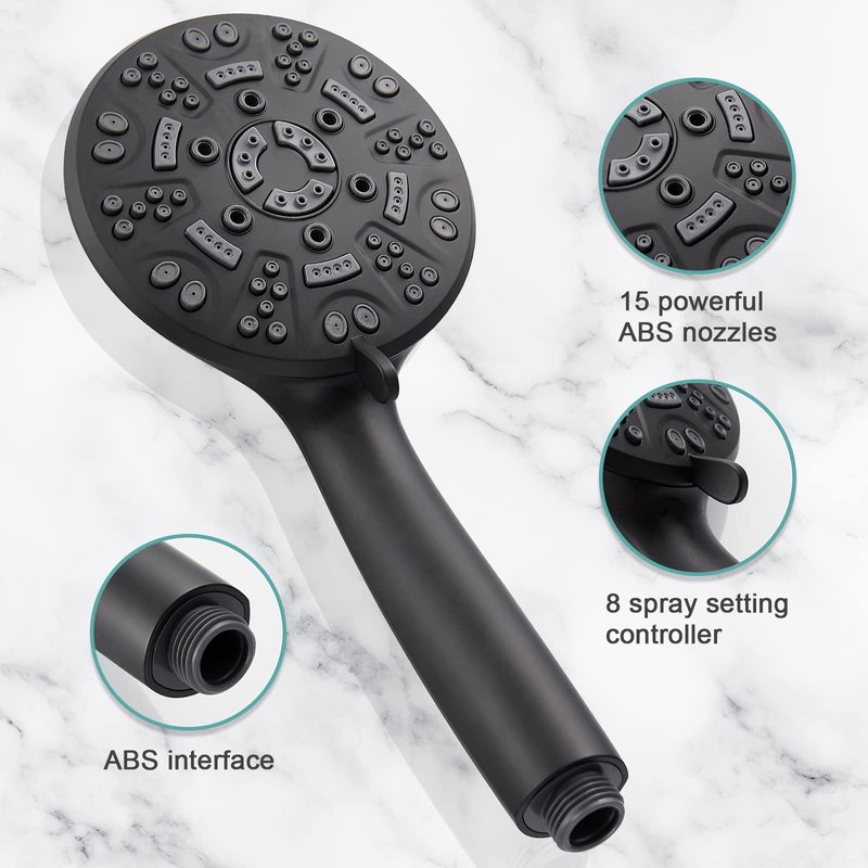 - [High Quality] The shower head is made of advanced ABS environmental protection material, which brings a delicate touch and effectively insulates the heat while ensuring hardness and durability. The exterior of the hose is made of stainless steel, which is highly tough, corrosion-resistant, rust-resistant and leak-proof.