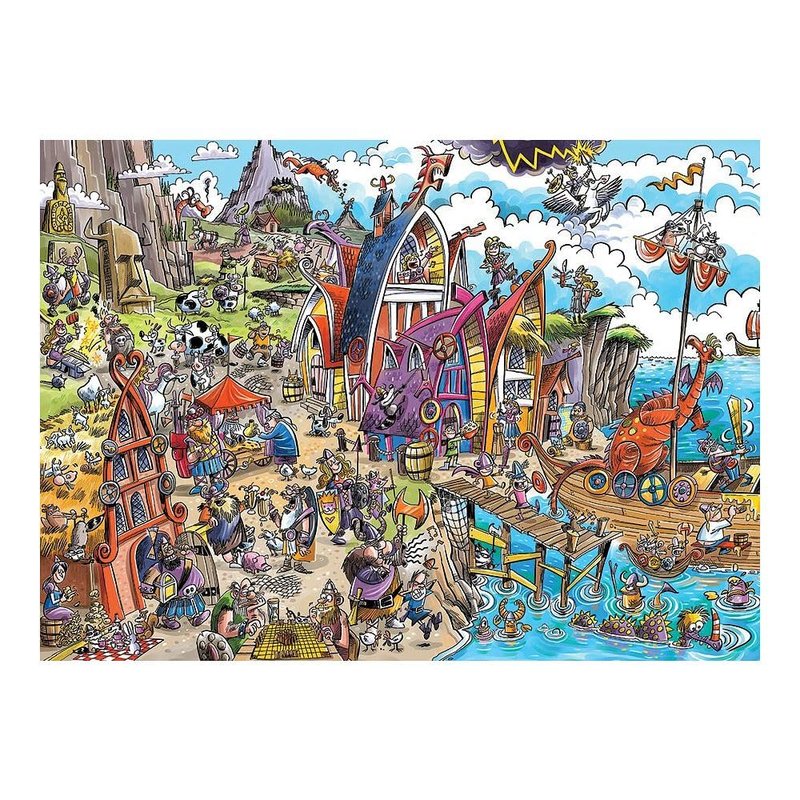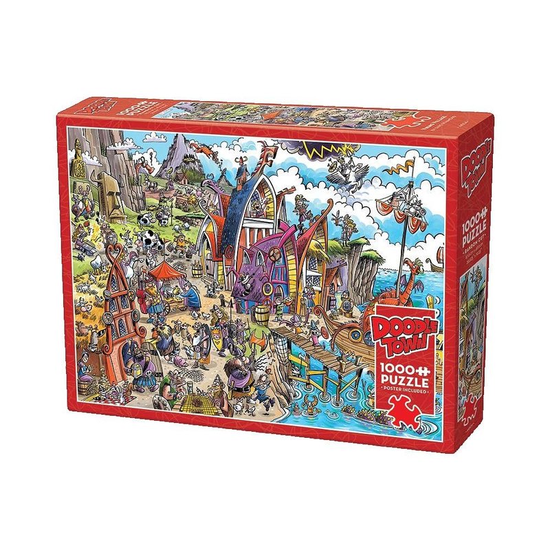 Cobble Hill 1000 Piece Puzzle - DoodleTown: Viking Village - Sample Poster Included