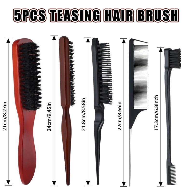 cobee 5 Pcs Slick Back Hair Brush Set, Bristle Hair Brush Edge Control Brush Teasing Comb, Wax Stick for Hair & Wig Flyaways, For Smooth Hair Parting Smooth Flyaways