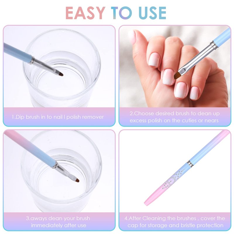- 【Easy to Use】Just dip the painting brushes for nails in the nail polish remover, then place the brush into the desired area to clean up excess nail polish on the cuticle. Finally, clean the brush after use and cover the caps for storage. ( Note: Please clean the brushes in time after using them to ensure the service life of the brushes.)