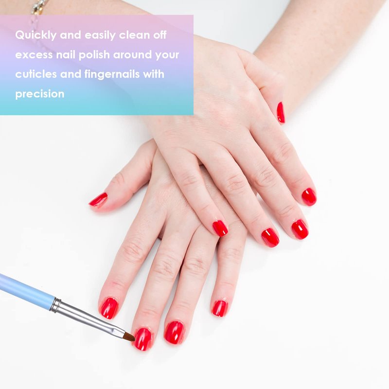 - 【Package Content】You will receive 2pcs nail remover brushes with different shapes: 7.5mm angled head brush and 8mm round head brush. This nail art clean brush set is specially designed to help clean away excess polish on your cuticles during or after your manicure. Giving you great experiences with a professional clean fresh look for nail cleaning. Also with this nail art brush set, you can easily create patterns and draw on nail tips.