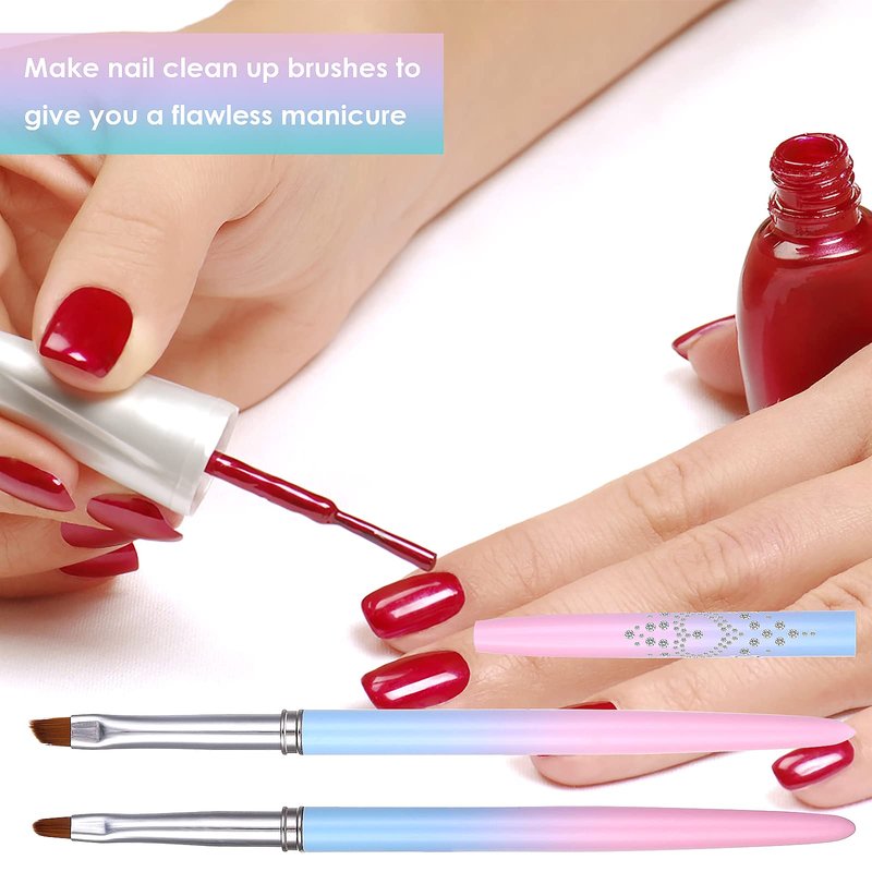 - 【Premium Material】This high quality nail polish clean up brush is made with synthetic bristles and a metal brush handle. Nail painting brushes feature a beautiful gradient pink&blue handle, easy to hold and paint, and stylish with function. The metal handle of this must-have brush is designed to hold up to nail polish remover, and different from traditional brushes with wooden handles, this brush will stand up to wear and use.