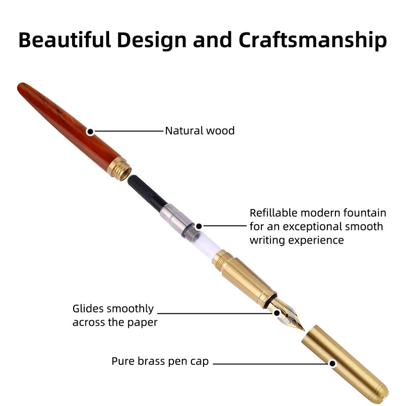 - 【Quality Material】The natural wood fountain pen is handcrafted from real wood, providing a gentle and comfortable feeling when gripped. The exquisite nib adds to the pen's impressive appearance.