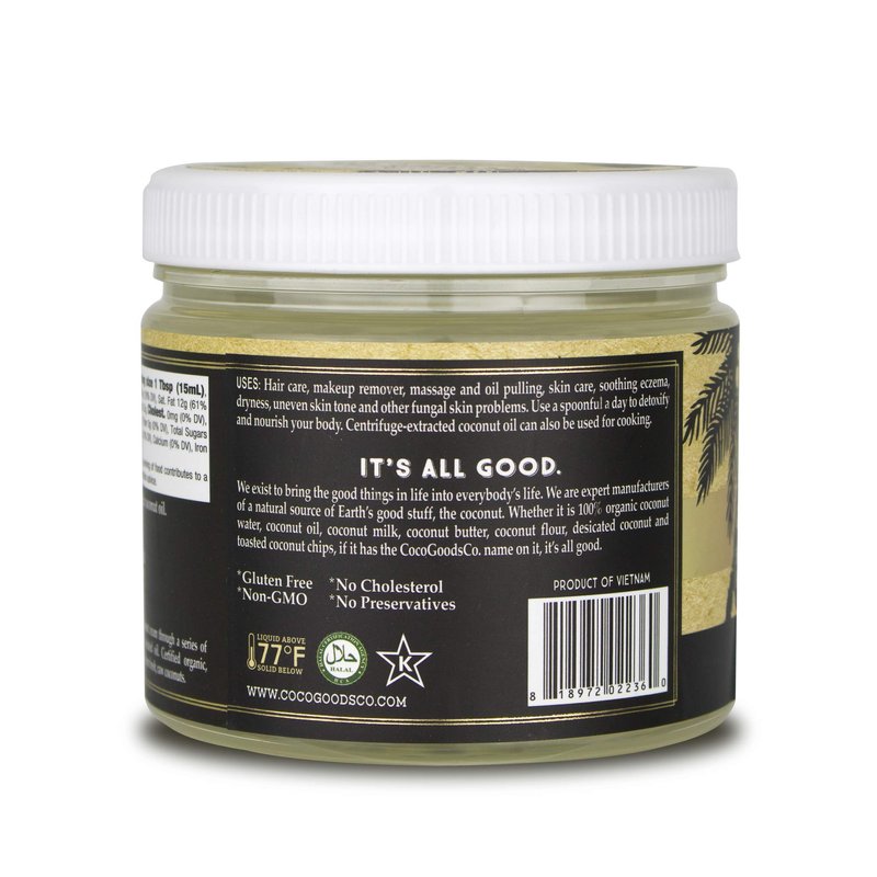 COCOGOODSCO Vietnam Single-Origin Organic Premium Coconut Oil, Centrifuge Extracted - Great for Hair and Nails Care, Skin Moisturizer (Home/Value Pack, 15 fl. oz Jar)