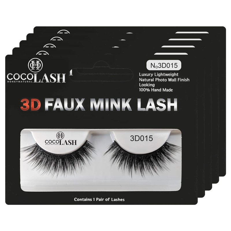 Cocohoney 3D Faux False Mink Eyelashes (5 PAIRS plus 1 ADHESIVE GLUE) DAILY LOOK, Reusable, Ultralight, Durable, Easy Application (3D015 (plus DARK GLUE))