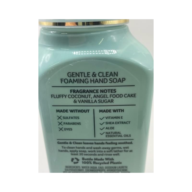 Coconut Angel Cake Gentle Foaming Hand Soap 8.75 Ounce Full Size Pump Bottle White Barn