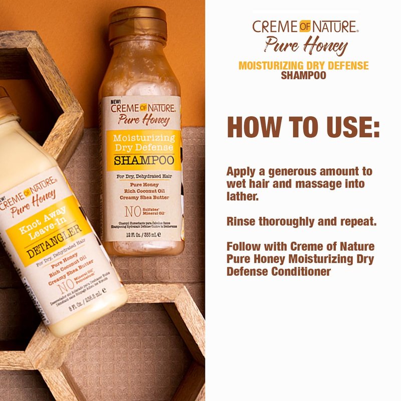 Coconut Oil & Shea Butter Shampoo by Creme of Nature,Dry Defense for Damaged Hair, Formula with Pure Honey, 12.07 Fl Oz