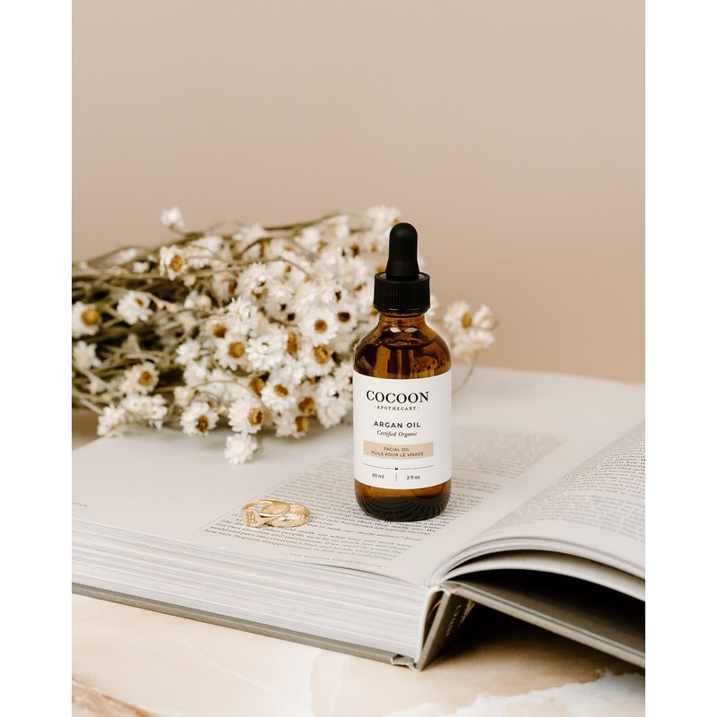 COCOON APOTHECARY Argan Oil Facial Oil, Ecocert Cosmos Organic, Protect + Soothe + Firm Skin, Rich in Vitamin E, Maintain Hydration, Soft + Smooth + Silky Skin, Organic Argan Oil, 2 fl oz