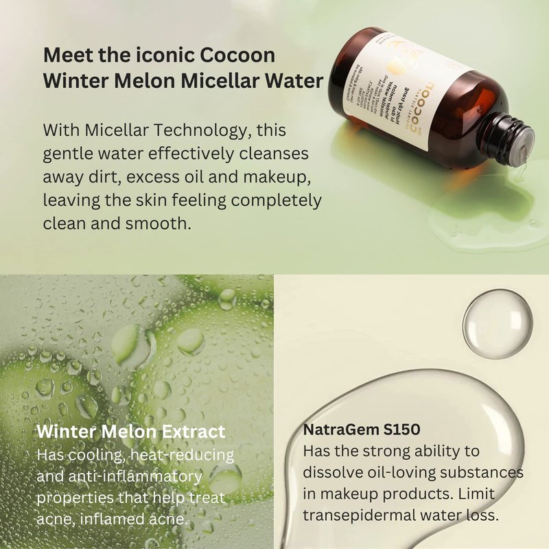 - Infused with the goodness of winter melon: Our micellar water is enriched with winter melon extract, which helps to soothe and hydrate your skin. It's the perfect way to nourish your skin while removing impurities.