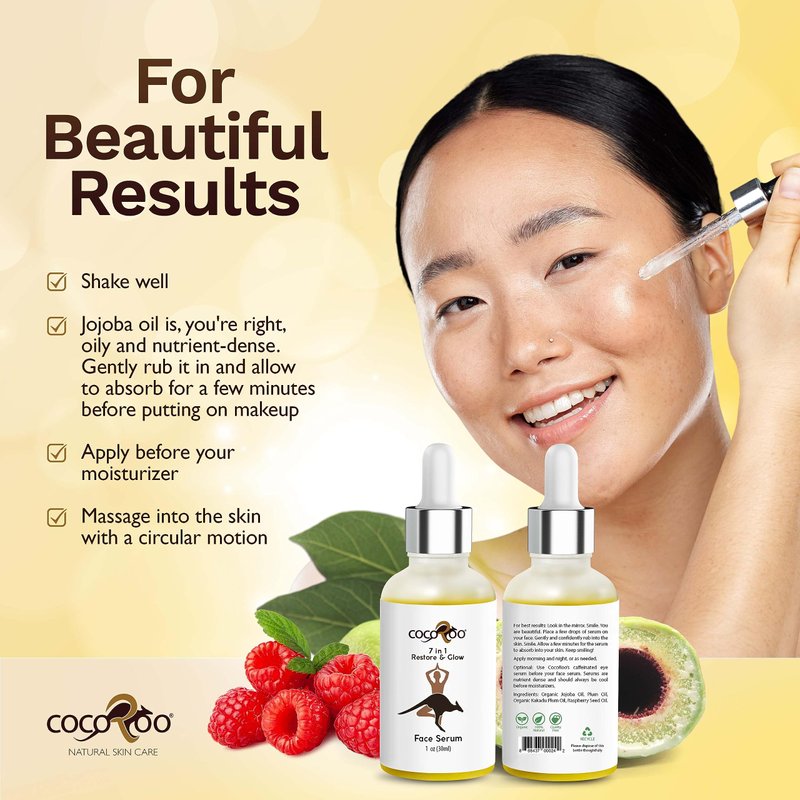 - PLANT-BASED Face serum made with Kakadu Plum, the richest source of Vitamin C, & Raspberry Seed Oil, which is full of antioxidants. Blended with Ceramide from Jojoba Oil, our facial serum helps rebalance your skin’s natural oils, giving you a healthy glow.