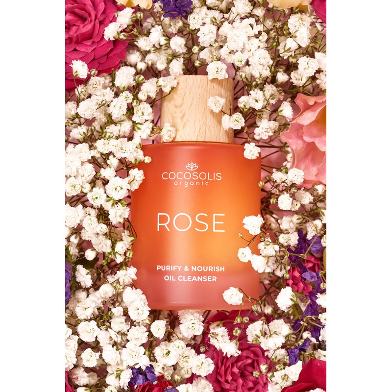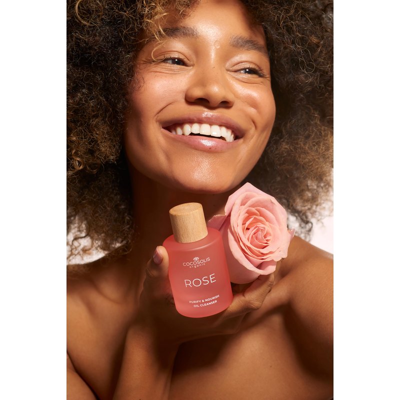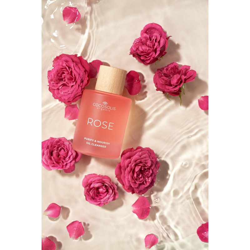 COCOSOLIS ROSE Purify & Nourish Oil Cleanser, moisturizing cleansing oil and make-up remover, vegan, with rose extract and vitamin E