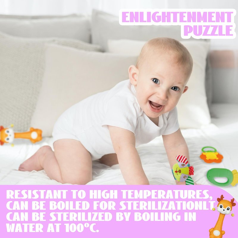 Discover a world of safe and high-quality baby toys with our exceptional collection, designed to ensure both entertainment and safety for your little ones. We are proud to offer you a range of toys that have passed the rigorous US Baby CPC Toy Test, guaranteeing their compliance with strict safety standards.< /b >< br >Crafted from environmentally friendly and pollution-free materials, our toys are free from harmful substances and do not contain any sharp or easily detachable parts.< /b >< br >With a focus on safety, we provide you with peace of mind knowing that our toys are designed with your child's well-being in mind.< br >Our carefully selected toy set, endorsed by Parenting Experts, includes three essential types of baby toys: rattles, plush rings, and teethers.< /b >< br >This comprehensive collection offers you everything you need to keep your little one engaged and entertained, eliminating the need for you to search for individual toys separately.< br > Designed to aid in early development and discovery, these toys play a vital role in enhancing your baby's cognitive and motor skills. < /b >< br >Through their interaction with our toys, infants will develop color recognition abilities, honing their auditory senses, improving object recognition skills, and enhancing their grasping capabilities. Furthermore, these toys can also help identify any potential issues such as color blindness, hearing impairments, visual problems, or mobility challenges, allowing for early intervention and treatment.< br >Our toy set is suitable for infants of varying ages, catering to their developmental stages and needs. < /b >< br >