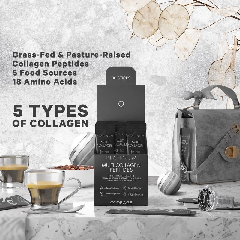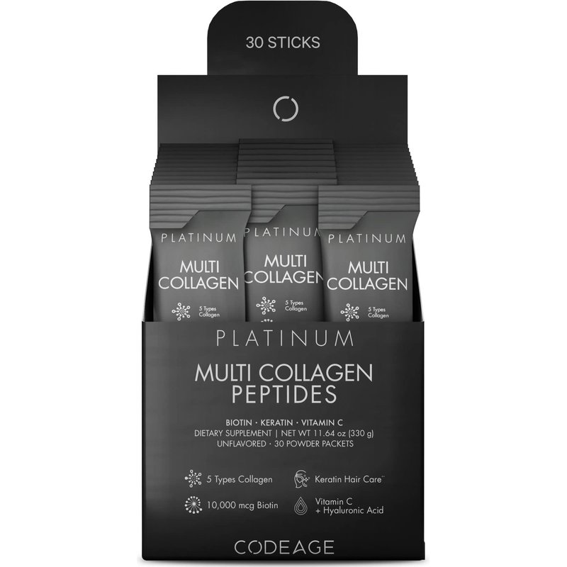 - Codeage Multi Collagen Platinum stick packs provide a premium and convenient way to incorporate collagen into your daily routine with a unique blend of 5 types of collagen peptides from 5 different food sources and 18 amino acids all-in-one.