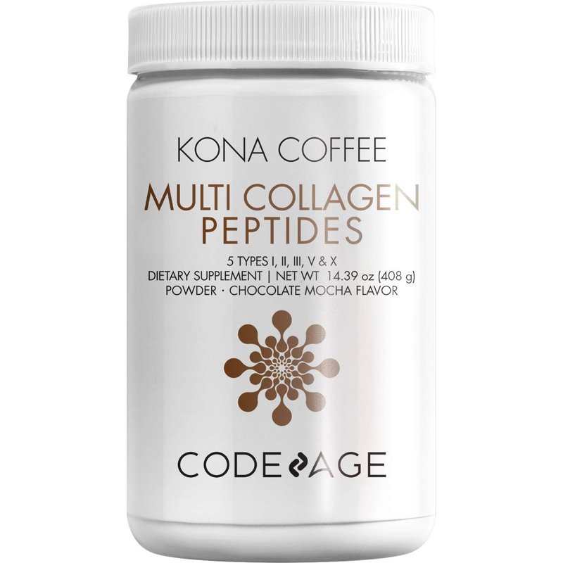 Codeage Multi Collagen Peptides Mocha is a multi-type collagen to boost your morning routine! Codeage Multi Collagen peptides powder - Type I, II, III, V, X supplement features natural sources of collagen in a high quality blend: grass fed hydrolyzed bovine, organic chicken, organic Beef bone broth, wild caught marine collagen, and egg collagen peptides Collagen is one of the most important proteins in our bodies. It’s specially designed to: Support Joint Comfort* Support Healthy Flexibility and Mobility* Support Joint Health* Maintain skin Elacticity* Type 1 collagen is the most abundant in the body and can be found in tendons, ligaments, organs and skin (dermis). It forms the matrix of bones and is part of the GI tract. It may help minimize fine lines and wrinkles, improve skin elasticity, and support the bone matrix. Type 2 is a nutrient rich source of glucosamine, chondroitin and what makes up connective tissue and cartilage. It may help strengthen joints and tendons, reducing joint pain and improving flexibility. Type 3 makes up the extracellular matrix keeping our organs and skin together. It keeps the skin elastic and firm. It is also part of our heart and muscle tissue, forming our blood vessels and may help reduce the effects of aging. Type 5 makes up the surface of our cells, our hair and placenta. This type of collagen can also improve the overall glow of the skin! Type 10 is part of the creation of new bones and cartilage. It has been found to be beneficial for the support of synovial joints, helping improve range of motion and reducing joint pain. 5 different sources of collagen to boost the benefits. 100% additive-free… Gluten Free, Non GMO and dairy free. Each bottle is manufactured in a GMP Certified Facility in the USA and undergoes strict third party testing to ensure safety, potency and quality.