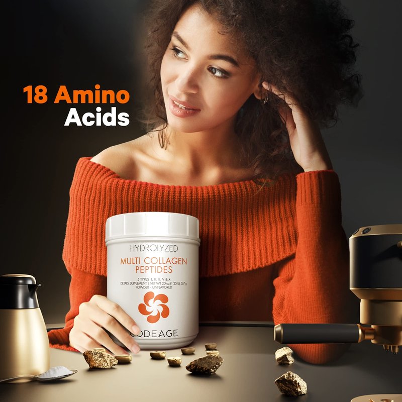 - Premium All-In-One Collagen Peptides With Organic Bone Broth: Codeage Multi Collagen Protein powder offers an all-in-one, premium collagen and bone broth collagen powder supplement. It features a high-quality blend of 5 types of food sourced collagen peptides including grass-fed beef, free-range chicken, wild caught fish, and eggshell collagens. This formula provides collagen Types I, II, III, V and X as well as 18 amino acids all-in-one. Unflavored and easy to mix.