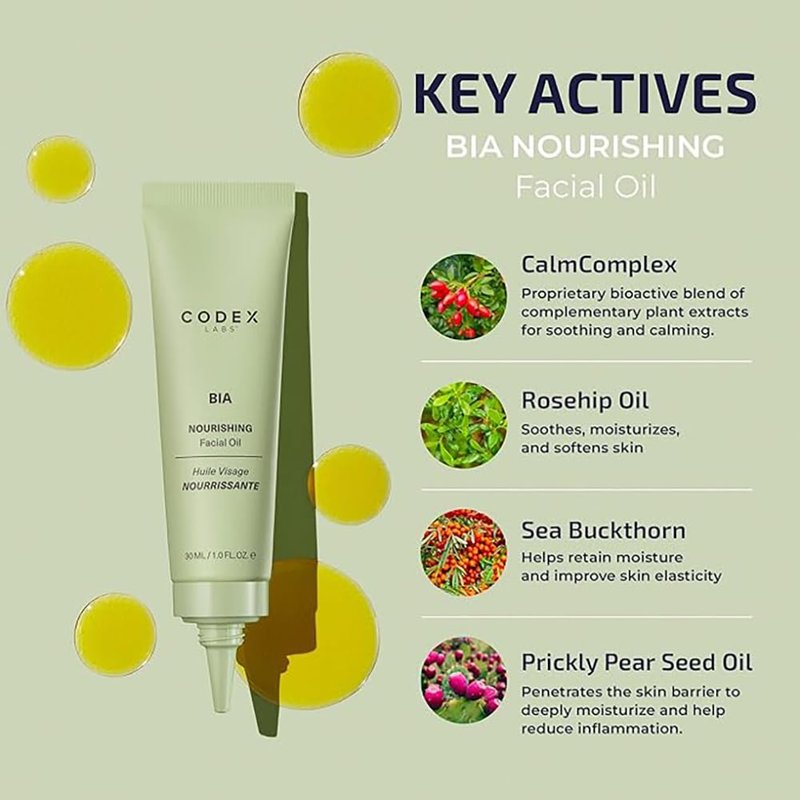 Codex Labs Bia Nourishing Face Oil - Hydration, Moisturizing & Smoothing - For Dry Skin, Sensitive Skin, All Skin Types - With Omega-3, Rosehip Oil, Vitamin E - Cruelty-Free, Vegan Skincare (30ml)
