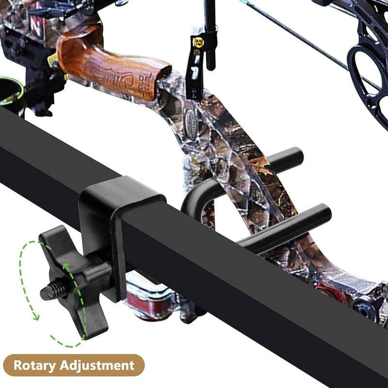(3)The bow holder has 12 teeth that can be rotated 360 degrees to adjust angle and lock, no matter how you install it, that can keep the bow in a ready position.