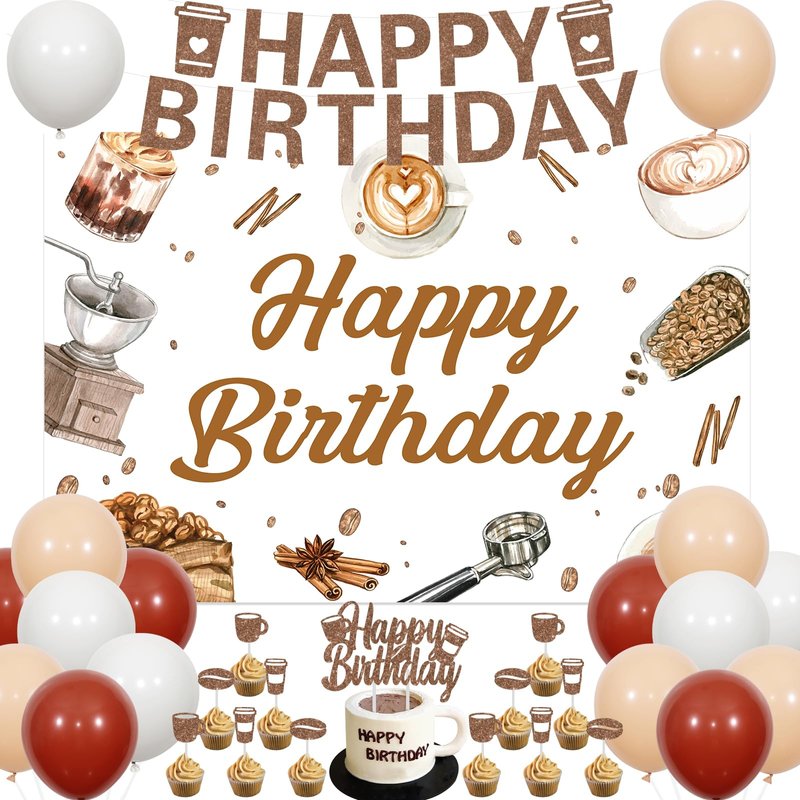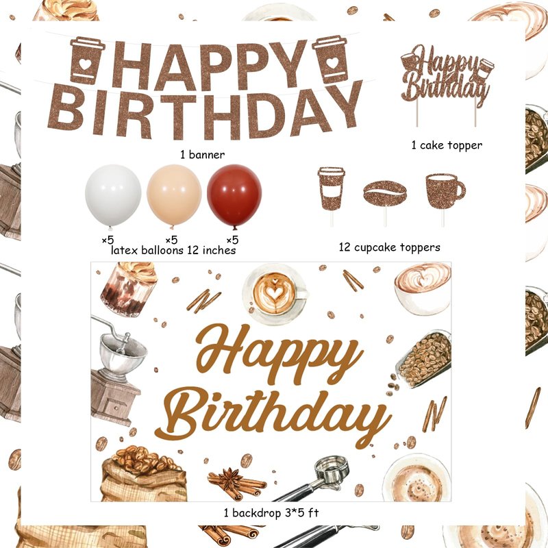 - Coffee Birthday Party Decorations Set: You’ll receive 15 x latex balloons(brown apricot and white), 1 x “Happy Birthday” backdrop, 1 x banner, 1 x cake topper and 12pcs cupcake toppers, various decors for you to decorate your party.