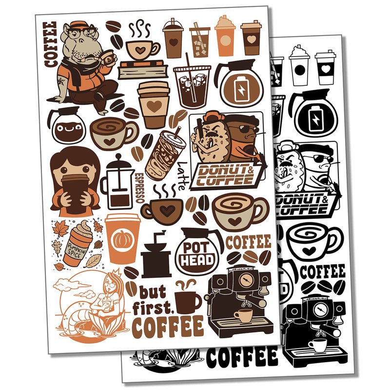 Coffee Love Temporary Tattoo Water Resistant Fake Body Art Set Collection - Black (One Sheet)