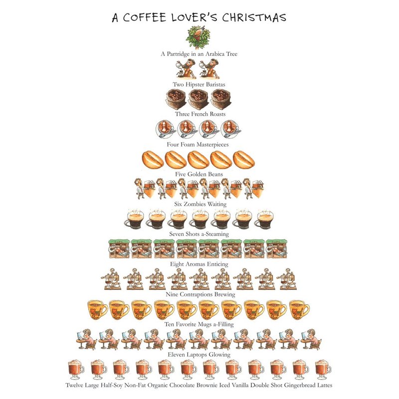 Coffee Lover's Christmas - Box of 15 Holiday Cards and Envelopes - 12 Days of Christmas Series