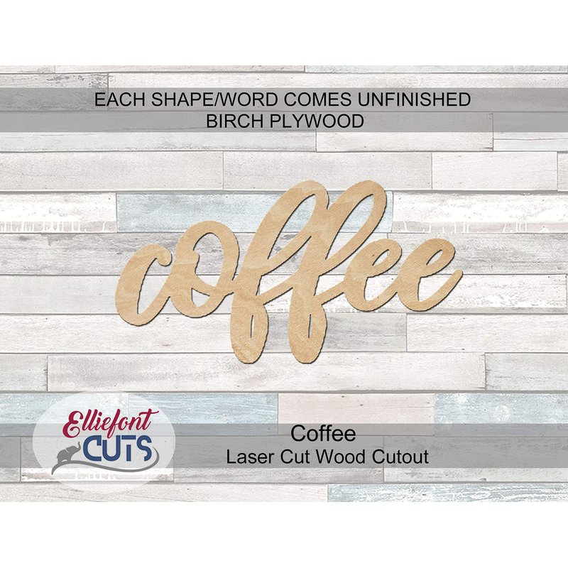 Coffee Wood Words, Wood Cutouts for crafts, Laser Cut Wood Shapes 5mm thick Baltic Birch Wood, Multiple Sizes Available