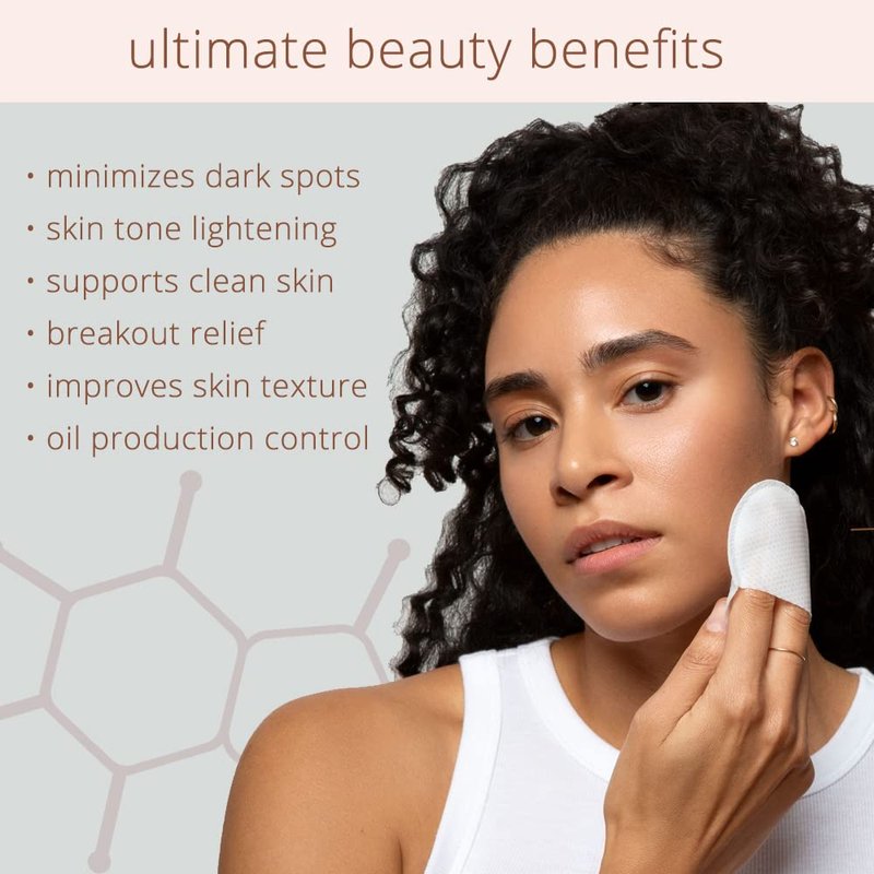 - 3-in-1 Moisture Pads with stabilized caffeine to boost collagen, super hyaluronic acid to hydrate, and manuka honey with humectant properties.