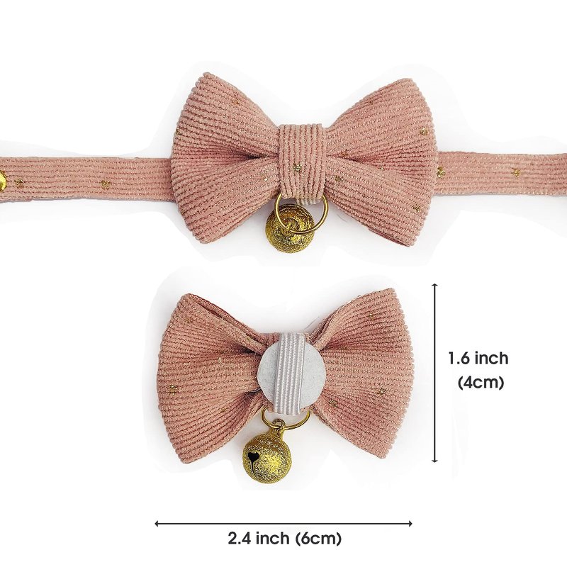 -Detachable bow is tied to the collar with an elastic loop. You can adjust the position of the bow.