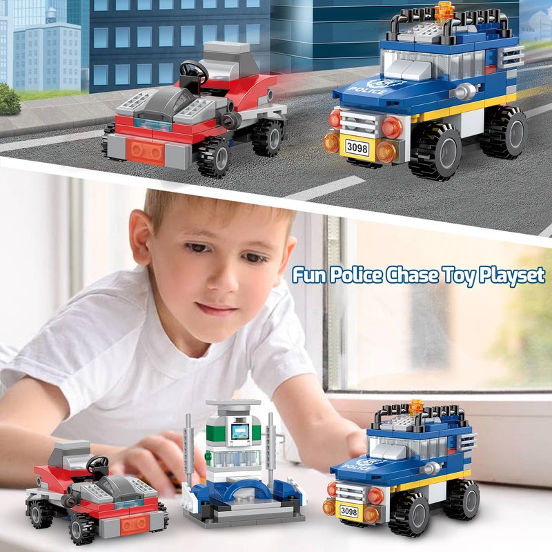 - 🎁【Great Gift Choice & High Compatibility】This creator 3 in1 set is packed in an elaborate box, making it a ideal gift for kids aged 6-12 who loves police vehicle toys. Its blocks are made of non-toxic ABS material and compatible with other brands' bricks. Kids can combine it with other city police building collections for even more creative play