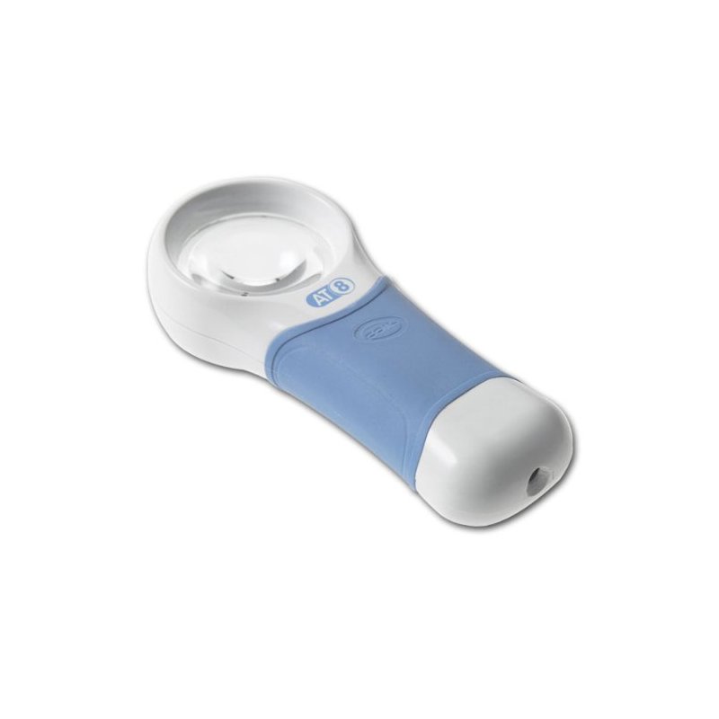 Magnification - 7X; Diopter - 24.0D; Magnifier + Charger. The Auto Touch has been designed to combine new innovative technology and specific ergonomic considerations to give a product that better meets the modern needs of the visually impaired. The Auto touch is simply activated by picking up and holding in either hand and will automatically turn off when released; no more difficult switch operation. LED light source offers better illumination and longer lasting, more efficient light. The Auto Touch is powered by environmentally friendly sealed rechargeable batteries, eliminating the need for constant battery change. It is supplied with a recharger and a soft leather case that offers additional protection. Features: touch control, ergonomic shape, powered by high capacity nickel metal hydride rechargeable batteries, environmentally friendly, abrasion resistant coating index matched, maintenance free, sealed LED light source, LED's have 150 times longer life expectancy than conventional bulbs, LED's do not generate heat, supplied with black protective metal case, color all white body and heads. Lens measures 42mm.