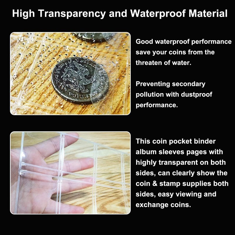 Thick but high transparency sleeves:Our Non-toxic coin currency collecting pages are thicker and more transparent on both side,facilitate to view and exchange.A wonderful way to store and display your collection.