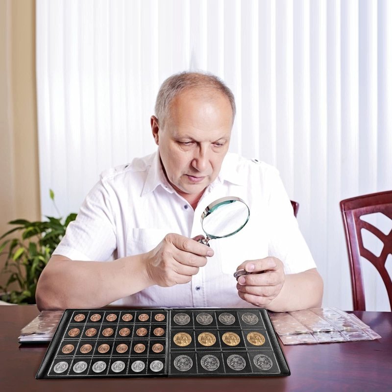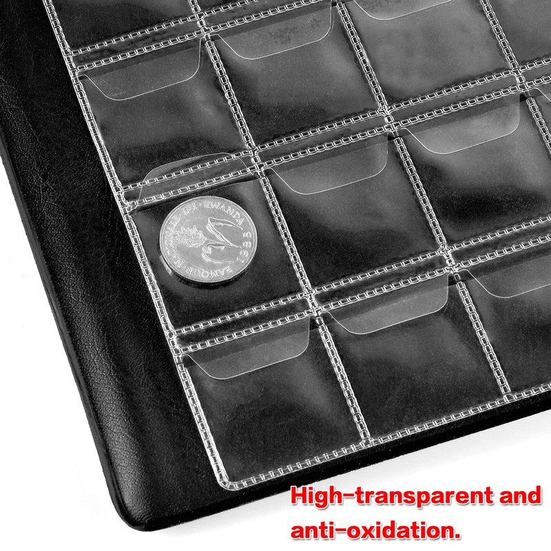 - COIN COLLECTION HOLDER WITH STURDY MATERIAL: Coin storage box with the exterior is made of sturdy PU material, which has a very good texture. The inner transparent thick pages have good protection, coin display case can not only facilitate you to look the coins for sale for collectors, but also store the silver bullion from dust.