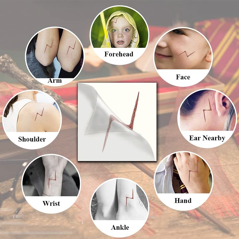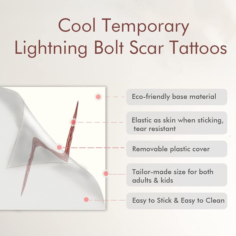 Col-Pary Wizard Lightning Bolt Scar Temporary Tattoos for Halloween,Magic Cosplay Birthday Party Supplies Decorations, 24 PCS