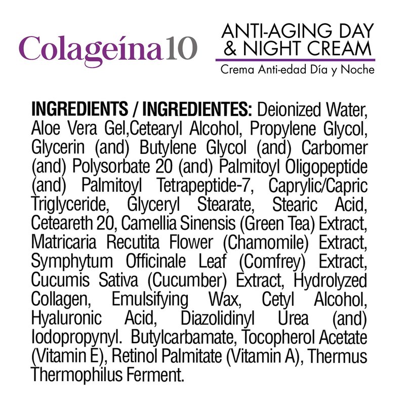 Colageina 10 Anti-Aging Day & Night Cream - Reduce the Appearance of Fine Lines & Wrinkles with Hydrolyzed Collagen and Hyaluronic Acid - 4 oz (120 ml)