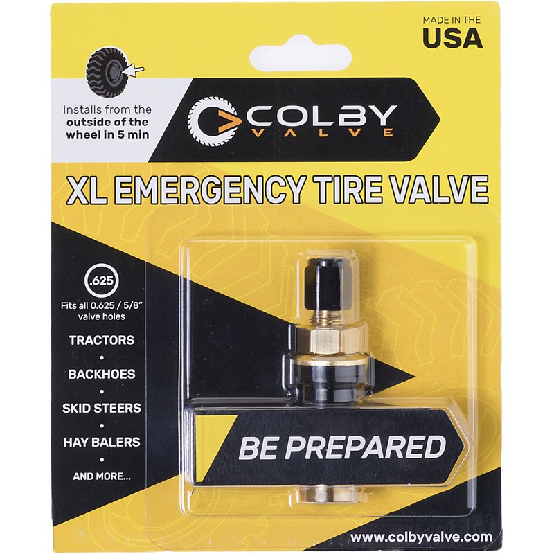 Our XL Valve is 5/8" sized for larger wheels and tires. These fit tractors, backhoes, skid steers, hay balers, heavy duty trucks, etc. They can be installed anywhere, from the outside of the wheel, without tire removal, in 5 minutes or less. You will need to tighten the XL Valve down with a 9/16" socket or a wrench. They are custom machined from 360 brass bar stock to our specifications. This results in a valve that is 20X stronger than standard valves. They aren't indestructible, but they will take one heck of a beating.